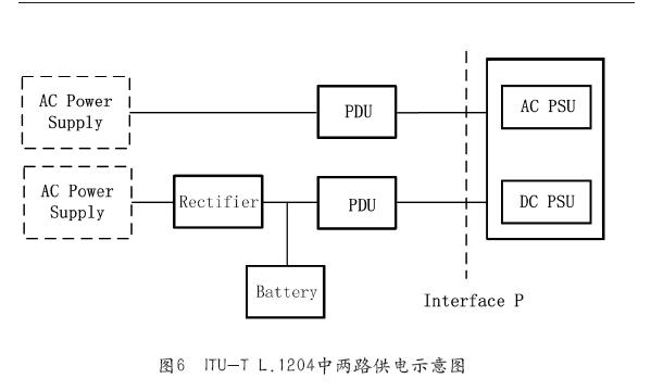 此外,ITU-TSG5在2016年10月全會(huì)中,提出立項(xiàng)研究L.dualpowerinput《多路交流或高達(dá)400V直流輸入的ICT設(shè)備電源影響》標(biāo)準(zhǔn)。該標(biāo)準(zhǔn)將分為四種情況進(jìn)行分析:帶有轉(zhuǎn)換開關(guān)的兩路交流電源模塊、帶有轉(zhuǎn)換開關(guān)的兩路直流電源模塊、具有內(nèi)置電路但無轉(zhuǎn)換開關(guān)的兩路直流電源模塊以及帶有轉(zhuǎn)換開關(guān)的交直流電源模塊,分別對(duì)傳送線纜、插頭插座、隔離裝置、電流均分方式、電池配置方式等方面進(jìn)行深入研究。