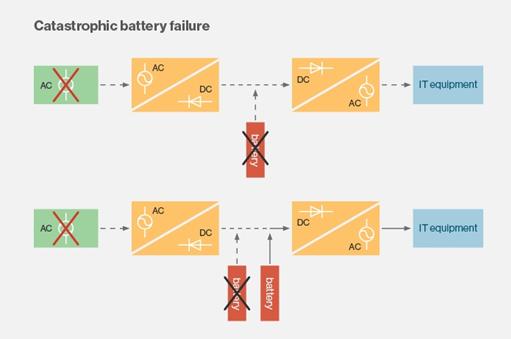 所有UPS系統(tǒng)都需要兩組電池串來防止在其中一組出現(xiàn)故障時(shí)出現(xiàn)災(zāi)難性故障。