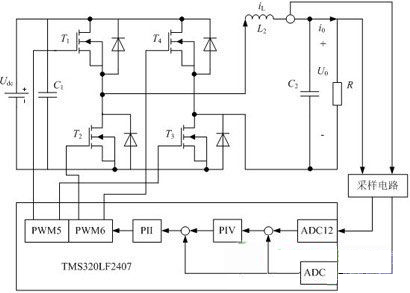 數(shù)字UPS電源的正弦逆變器是時刻處于工作過程中,其工作原理是通過采樣電路對逆變電路輸出電壓和電流進行采樣,得到的采樣信號輸入到DSP,通過對采樣信號進行處理,依照一定的算法和程式來實現(xiàn)正弦逆變電路控制的功能。