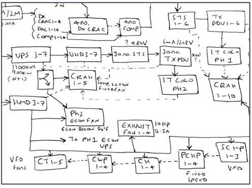 解鎖真正預(yù)測(cè)數(shù)據(jù)中心的成本和能源的能力,DCIM應(yīng)該能夠提供對(duì)未來(lái)的預(yù)測(cè),讓數(shù)據(jù)中心運(yùn)營(yíng)商知道數(shù)據(jù)中心不同的負(fù)載和溫度條件下的反應(yīng),以及跟蹤項(xiàng)目的主要設(shè)施的利用能力。這一個(gè)方法是通過(guò)性能模型體現(xiàn)的,其中包括在電力和冷卻鏈的主要機(jī)械和電氣基礎(chǔ)設(shè)施(見(jiàn)圖4)。該模型取代了以前繁重的手工構(gòu)造的模型(見(jiàn)圖1)。
