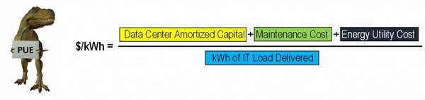 圖6(c)根據(jù)他們的活動(dòng)模型,為每一個(gè)客戶分配美元/千瓦時(shí)?!皵?shù)據(jù)中心交付成本”是報(bào)告的成本效益真實(shí)的方式,可能比PUE對(duì)于高級(jí)管理層更有意義。例如,在第一個(gè)新數(shù)據(jù)中心的第一個(gè)兩到三年的壽命中,資本成本分量起支配作用不管PUE和運(yùn)行效率。