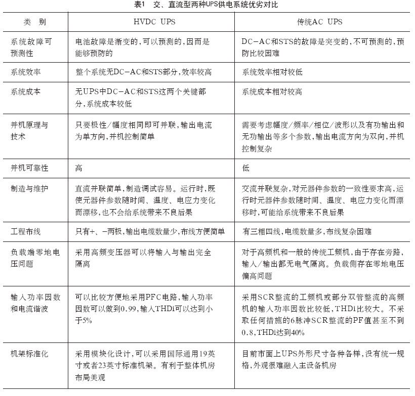 交、直流兩種供電系統(tǒng)優(yōu)劣對(duì)比見表1。