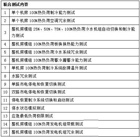 聯(lián)合測試指數(shù)據(jù)中心所有機電系統(tǒng)作為一個整體進行測試,通過全額假負(fù)載模擬真實運行時的各種運行狀態(tài)及故障模式時的各種狀態(tài)。進行全額假負(fù)載投入的成本非常大,如無法獲得高額預(yù)算可減少假負(fù)載的數(shù)量,但不能少于25%的帶載量。