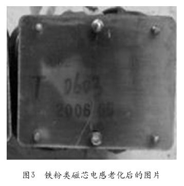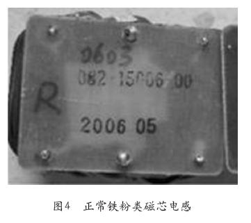②一般生產(chǎn)廠商由于成本原因,電感磁芯往往選用鐵粉類(lèi)的磁芯。鐵粉類(lèi)的磁芯有一個(gè)致命缺陷,即老化問(wèn)題。這類(lèi)磁芯隨著使用時(shí)間的推移,磁芯性能會(huì)逐漸下降,電感量會(huì)逐漸降低。當(dāng)電感量降低到一定程度時(shí),電感就會(huì)完全失效,導(dǎo)致機(jī)器故障。一般三年左右,鐵粉類(lèi)磁芯的電感的壽命就差不多了。當(dāng)機(jī)器長(zhǎng)時(shí)間帶重載或工作環(huán)境溫度比較高,電感老化問(wèn)題會(huì)更嚴(yán)重。UPS鐵粉類(lèi)電感老化后的照片見(jiàn)圖3。正常鐵粉類(lèi)磁芯電感見(jiàn)圖4。