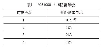 雷擊是導(dǎo)致電子產(chǎn)品故障的主要原因之一。IEC61000-4-5對(duì)電子類(lèi)產(chǎn)品防雷等級(jí)定義如表1所示。UPS防護(hù)等級(jí)有按2級(jí)設(shè)計(jì)的,也有按4級(jí)設(shè)計(jì)的,即在電源輸入端口放置壓敏電阻或氣體放電管來(lái)吸收雷擊脈沖能量,進(jìn)而避免電源內(nèi)的半導(dǎo)體器件損壞。