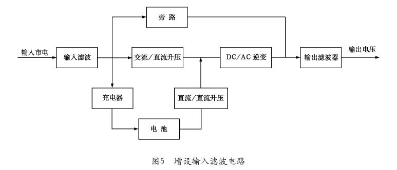 (3)新UPS在設(shè)計(jì)時(shí),電源輸入測(cè)增設(shè)濾波電路,抑制輸入電源的諧波電壓峰值,減少因直流電壓過(guò)高而引起的UPS自動(dòng)關(guān)機(jī)故障,提高蓄電池的使用壽命。