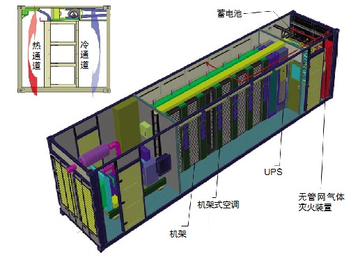 集裝箱式數(shù)據(jù)中心,外殼采用符合業(yè)界海運要求的工業(yè)集裝箱箱體,集成配電、監(jiān)控、制冷、機柜、布線、消防、安防等所有基礎設施子系統(tǒng),經(jīng)裝飾后可以滿足數(shù)據(jù)中心的性能及維護需求。內(nèi)部所有的部件以標準的工廠預安裝完成部署,快速完成生產(chǎn)??蛻魞H需提供場地、電力和網(wǎng)絡即能獲得完整的數(shù)據(jù)中心。