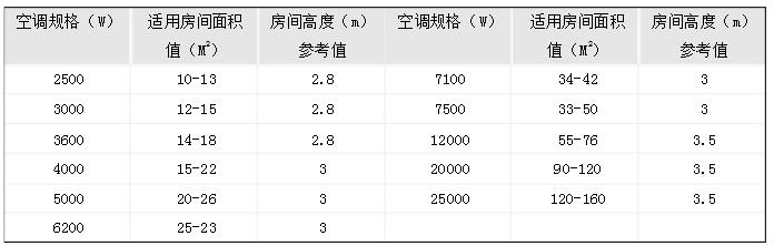 注:變頻機相應(yīng)機型,適用面積可大些(附表中面積的1.2~1.3倍)。