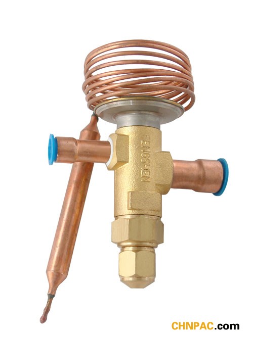 3、脹大閥的品種:(內(nèi)平衡、外平衡) 效果于熱力脹大閥體內(nèi)傳動膜片下部的壓力為節(jié)省后的蒸騰壓力(這一壓力經(jīng)過傳動桿和傳動片的縫隙而進入膜片下部分空間)這種結(jié)構(gòu)稱為內(nèi)平衡式脹大閥。 效果于熱力脹大閥體內(nèi)傳動膜片下部的壓力不是節(jié)省后的蒸騰壓力,而是經(jīng)過外接平衡管將蒸騰器出口端的壓力引進傳動膜片下部空間結(jié)構(gòu)的閥門、稱為外平衡式熱力脹大閥。 與內(nèi)平衡式脹大閥比較,外平衡式熱力脹大閥的過熱度要小得多,所以選用外平衡式熱力脹大閥時,能充分發(fā)揮蒸騰器的傳熱面積的效果和進步制冷設(shè)備的效果,在蒸騰器阻力較小、壓力丟失不大的情況下,可選用內(nèi)平衡式熱力脹大閥;當(dāng)蒸騰阻力較大,壓力丟失比較大或具有液體分配器時,應(yīng)選用外平衡式熱力脹大閥。選用分配器的,一般都選用外平衡脹大閥。 在專用空調(diào)機中選用的通常是外平衡式熱力脹大閥。熱力脹大閥雖僅僅一個很小的部件,但它在制冷體系中的效果必不可少,所以它與制冷緊縮機、蒸騰器、冷凝器、并稱為制冷體系四大部件。