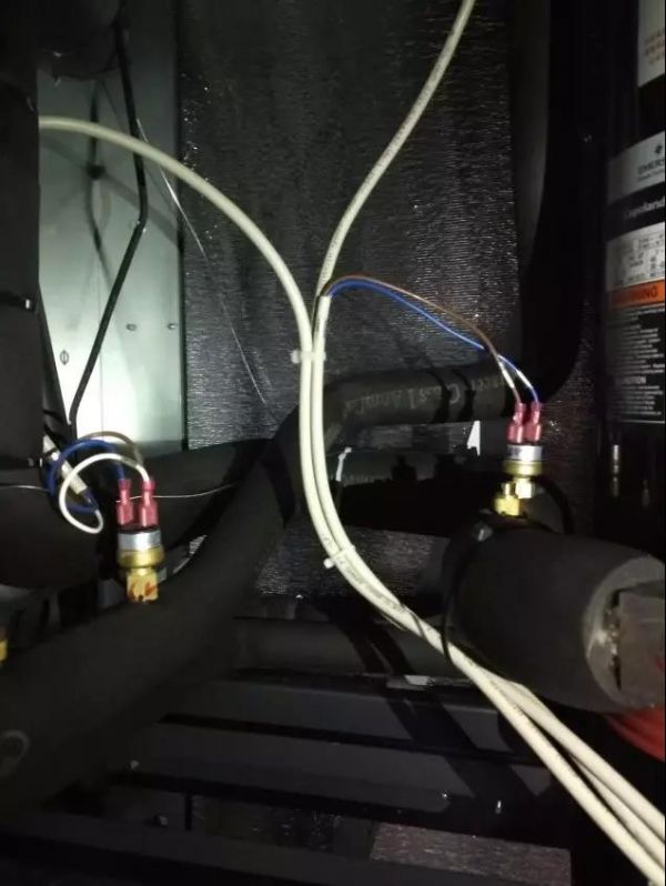 一般情況下高低壓力開關(guān)自帶控制線是與開關(guān)密封連接的,沒有自帶控制線的就需要將導線與開關(guān)進行插接連接,問題大多就出現(xiàn)在這樣的連接上。由于機組運行時振動和氣流的影響,插接點易松動,連接線易斷掉,而且連接點是不密封的,很多情況下機組內(nèi)的冷凝水會飛濺到此,加快腐蝕或產(chǎn)生誤動作。