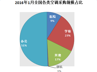 2016年1月全國(guó)各類空調(diào)采購(gòu)規(guī)模占比